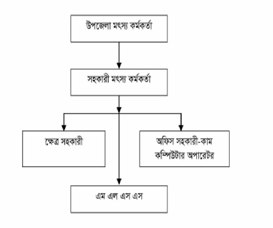 উপজেলা মৎস্য অফিসার ⇒ সহকারী মৎস্য অফিসার ⇒ ক্ষেত্র সহকারী ⇒ অফিস সহকারী কাম কম্পিউটার অপারেটর ⇒ অফিস সহায়ক